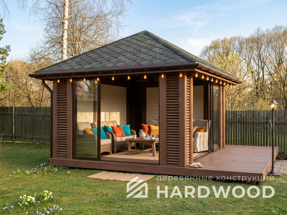 | Название модели: | Четырехскатная беседка из дерева №99 |